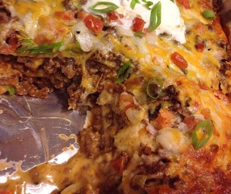 Taco Casserole All the delicious flavors of Ground Beef Tacos in one Filled Layered Casserole!It is sure to be the new staple dinner recipe!